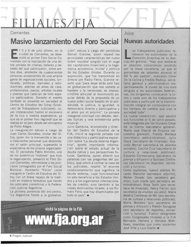 Visualizador de los Pregones Judiciales de la Federación Judicial Argentina